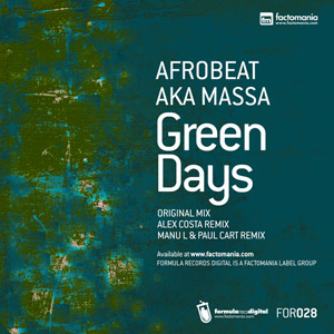 ESP Después de haber editado producciones de artistas de EEUU, de Eslovenia, de Chile, de Italia , de Ucrania,.. Formula Recs vuelva a confiar en un artista español en plena evolucion, Afrobeat nace de esa continua evolucion en la que se ve involucrado Massa. Asi AFROBEAT AKA MASSA crea producciones más lentas y más musicales donde priman las melodias envolventes con grooves bailables. Sonidos que salen del mas puro sentimiento, que refleja la influencia de otros productores como NTFO, Tale Of Us, Samuel Dan ,etc…. Un estilo mas Deep, sin perder la contundencia de la base rítmica, y Green Day es el fiel reflejo de esta filosofia.