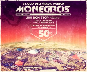 9 Feb 2012El maratoniano festival que cada año organizan el grupo Florida y la organización Enter Group, es decir, el Monegros Desert Festival, ya tiene fecha para la edición de ste 2012, que será, ya la decimoctava entrega del célebre evento, con lo que podíamos decir que la rave del desierto llega a su mayoría de edad.