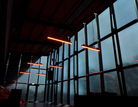 El proyecto mantiene gran parte de la arquitectura original del recinto —estructuras de hormigón, acero y amplios ventanales— adaptándola a un formato contemporáneo pensado para la música electrónica.