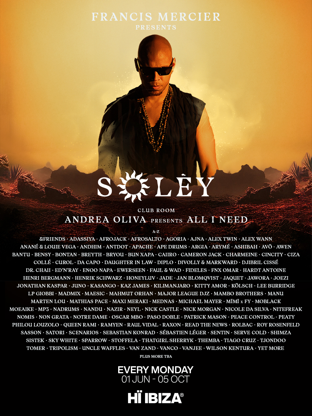 Los lunes en Hï Ibiza estrenan una nueva dimensión sonora con Francis Mercier Presents Solèy en Theatre y Andrea Oliva Presents All I Need en la Club Room, del 1 de junio al 5 de octubre. La temporada se articula en torno a un ambicioso programa artístico que sitúa la colaboración en el centro, con una destacada serie de sets B2B y B3B que acompañan el debut de ambas residencias en el Club Nº1 del Mundo.